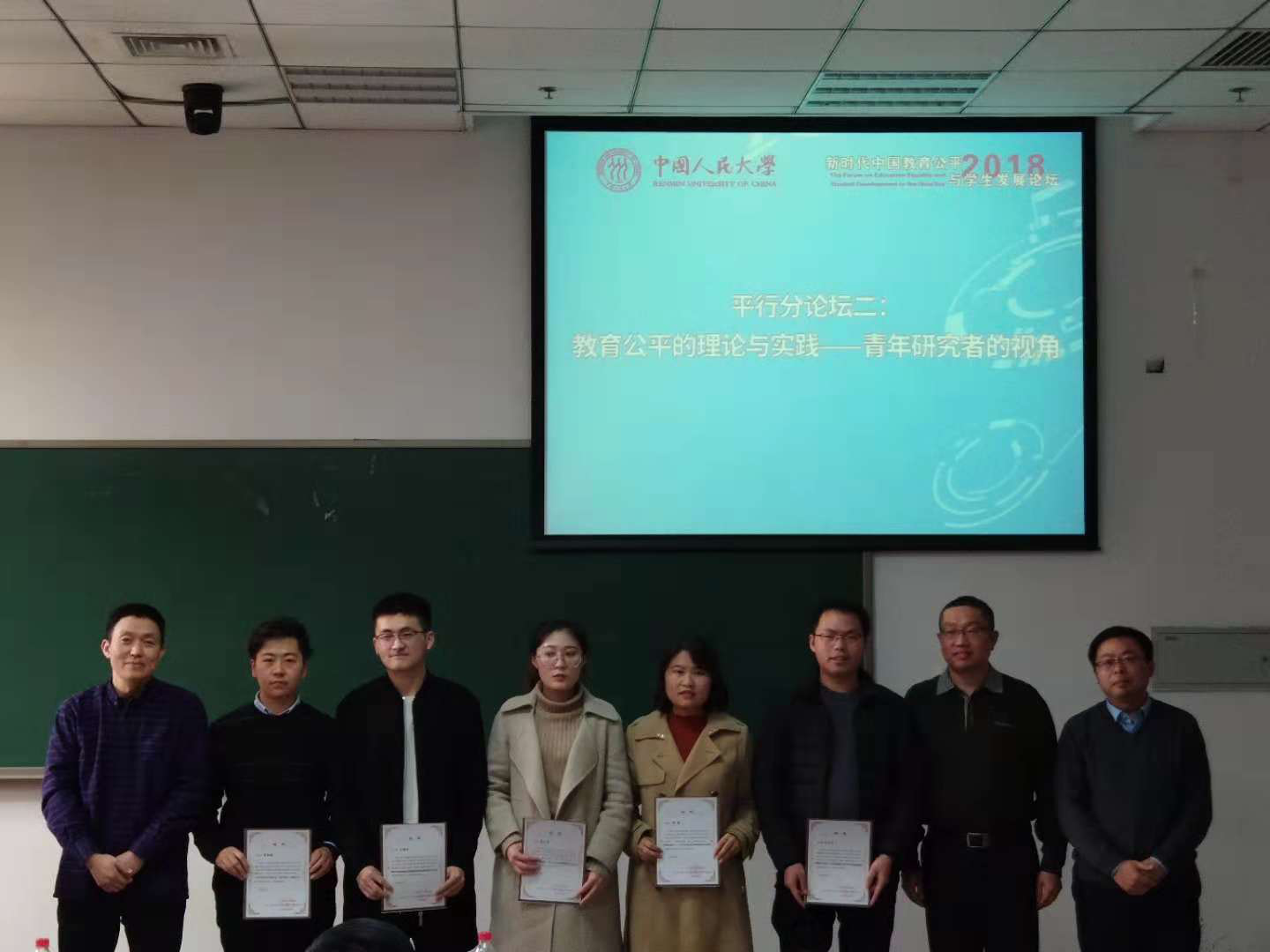 在“教育公平的理论与实践——青年研究者的视角”分论坛上,天游8线路注册检测中心博士生王梦然,复旦大学高等教育研究院博士生杨菲担任主持人。首都师范大学天游8线路注册检测中心硕士生罗晓燕,天游8线路注册检测中心硕士生公钦正,江苏师范大学教育科学学院硕士生苏文琦,复旦大学高等教育研究院博士生汪卫平,西安交通大学人文社会科学学院本科生沈慧,清华大学公共管理学院助理研究员、博士后程猛,北京大学天游8线路注册检测中心硕士生金红昊,北京师范大学中国基础教育质量监测协同创新中心博士生元英,天游8线路注册检测中心硕士生赵阔等分别就高考招生政策、贫困及农村地区学生学业成就、社会流动及社会网络、随迁子女入学政策、贫困地区乡教育质量评价等问题进行论文汇报。临沂大学天游8线路注册检测中心副院长薄存旭教授,上海市教育科学研究院研究员翁伟斌,《中国高教研究》编辑部副研究员王者鹤,青岛大学师范学院教授吕慈仙,《中国教育学刊》副编审吕允英,对外经济贸易大学教育与开放经济研究中心助理研究员薛新龙进行详细而精彩的点评,并为学生颁发优秀论文证书。